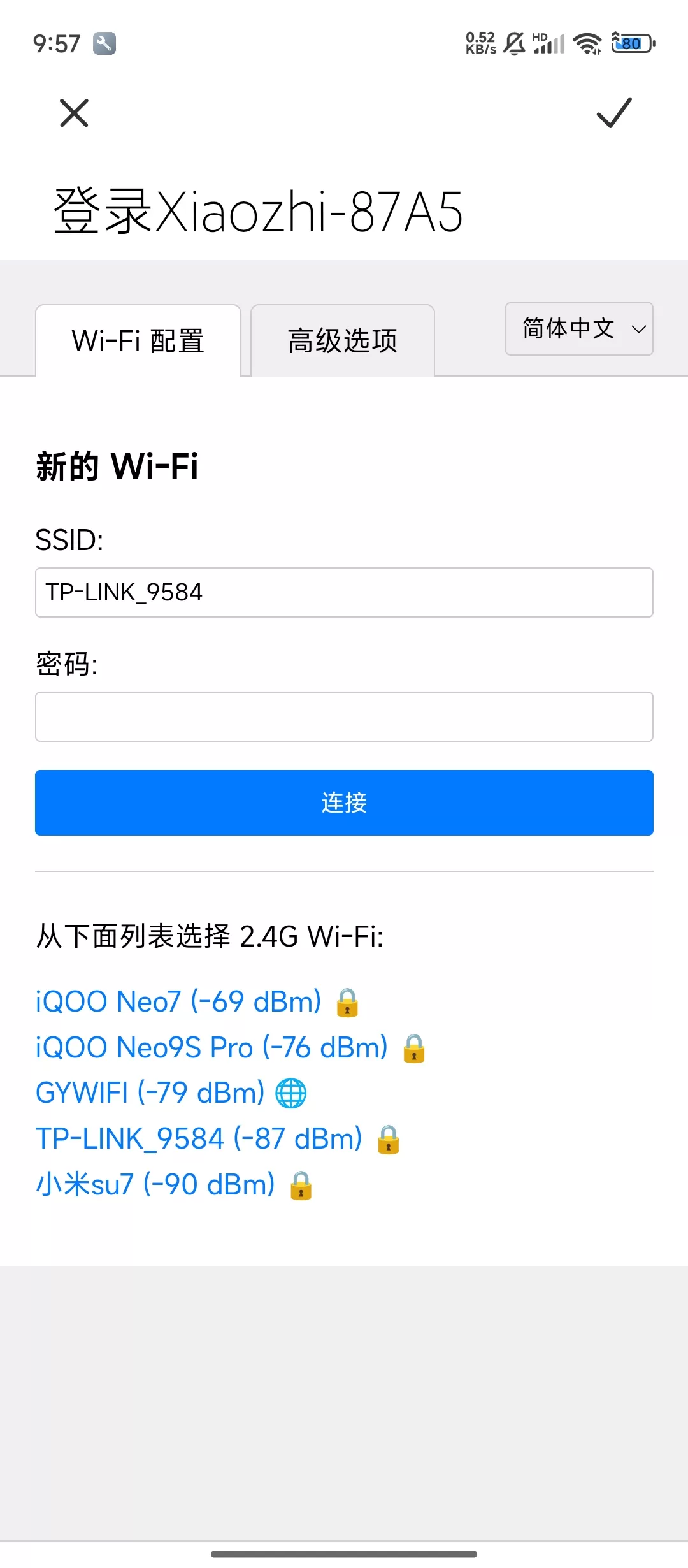 第二步:我们这个时候就可以打开它啦,直接把开关向上滑动就可以哦。它首先会进行扫描wifi,然后初始化,这个不用管哦,也不用动它,稍等一会会它就会说进入配网模式,这时候把手机的wifi打开,我们就可以搜索到一个名字是xiaozhi-87A5的wifi啦,然后我们直接连接wifi,不需要密码哦